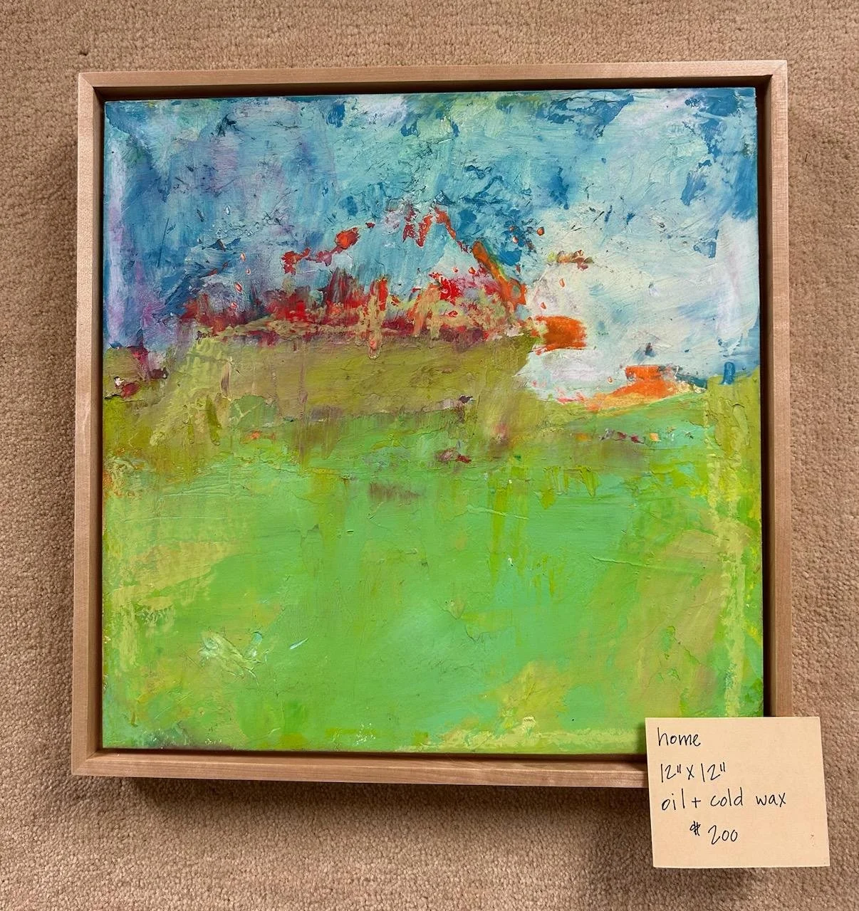 Michelle finds personal pleasure in abstracts because they allow the viewer to see something in them related to their own personal experiences and dreams. She prefers to paint on wood, with oil & cold wax. The medium lends itself to different techniques for layering and subtracting paint, telling a story, until the perfect composition is realized.