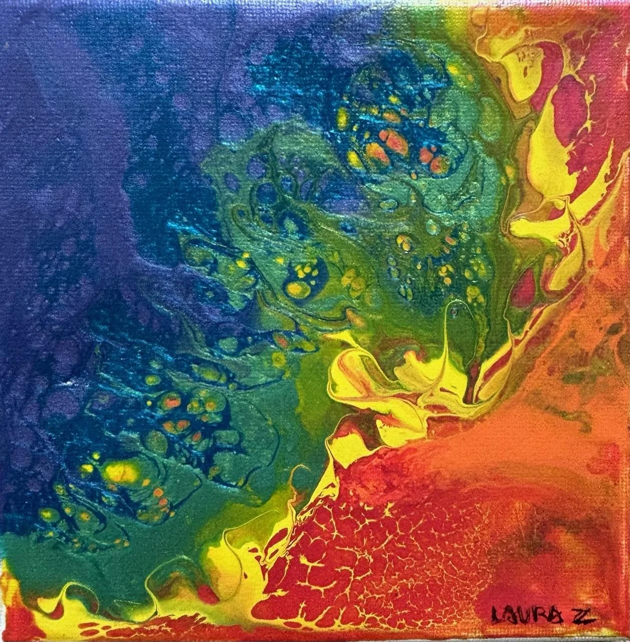 Laura Zepeda (they/them) is an artist, writer, and stand-up comic living in Anderson County, Tennessee. This lifelong artist's current obsession is making colorful abstract paintings in acrylic and mixed media. All works are available for purchase. Private art instruction and wildly liberal comedic commentary available upon request. Please contact the artist at FairyRustArt@gmail.com.